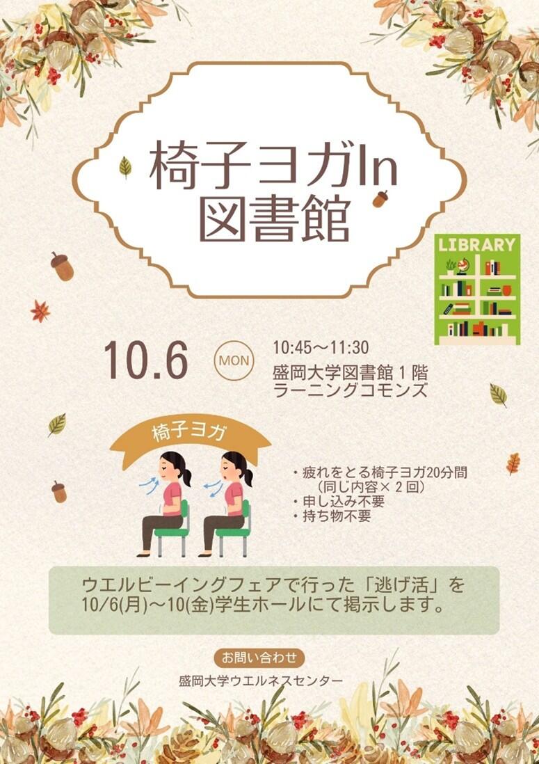 ウェルネスセンター主催「椅子ヨガ In 図書館」をラーニングコモンズで開催いたします。