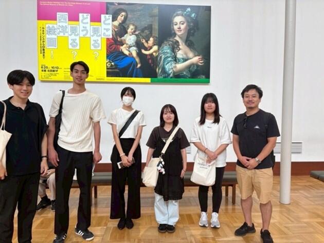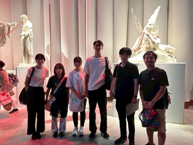 21日、京都駅に到着後、まず京セラ美術館に向かい、ルネサンスから印象派まで、さまざまな時代の絵画を鑑賞しました。学生は「フランス文化論」で学んだ絵画に関する知識を活かし、絵の主題、技法、時代背景について考察しました。その後は夢洲駅経由で万博会場へ。連日過去最多の入場者数を記録している万博。しかも、夜間チケットを購入した我々は16時以降にしか入場できません。1時間以上待機し、ようやく入場できましたが、どのパビリオンも超満員。しかしこのあたりは十分に想定していたので、臨機応変に行動し、お目当てのフランス、イタリアのほか、アラブ首長国連邦、ウガンダ、トンガ、バヌアツ、サモア、パブアニューギニアなど、複数のパビリオンを見学できました。大小様々な国の文化や歴史に直接触れる、得難い経験ができました。