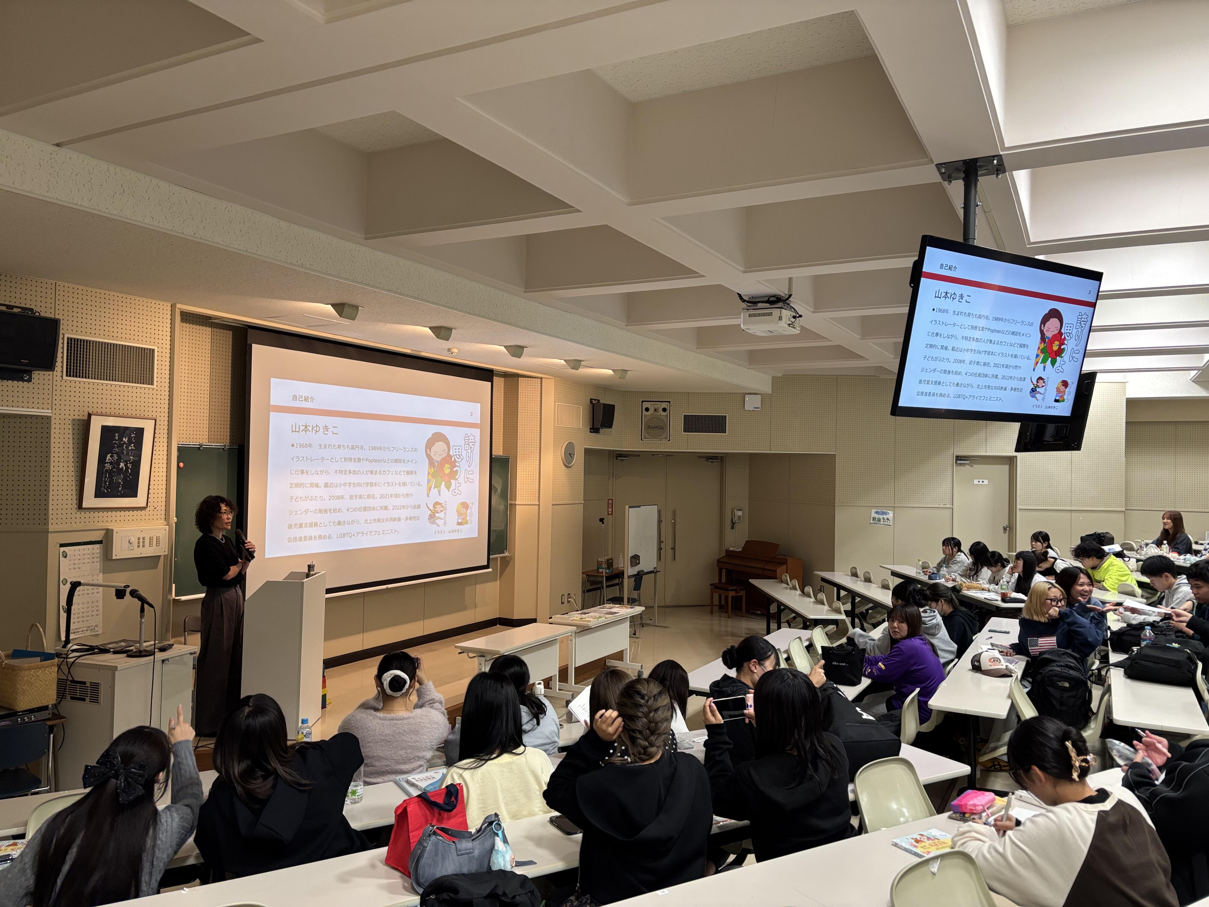 短大部 1,2年生を対象(丸山ちはや助教の担当科目の受講生)に、ゲストティーチャーの山本ゆきこさんをお招きして、「みなさんと考えるLGBTQ+のこと」 と題して、特別講義を実施しました。