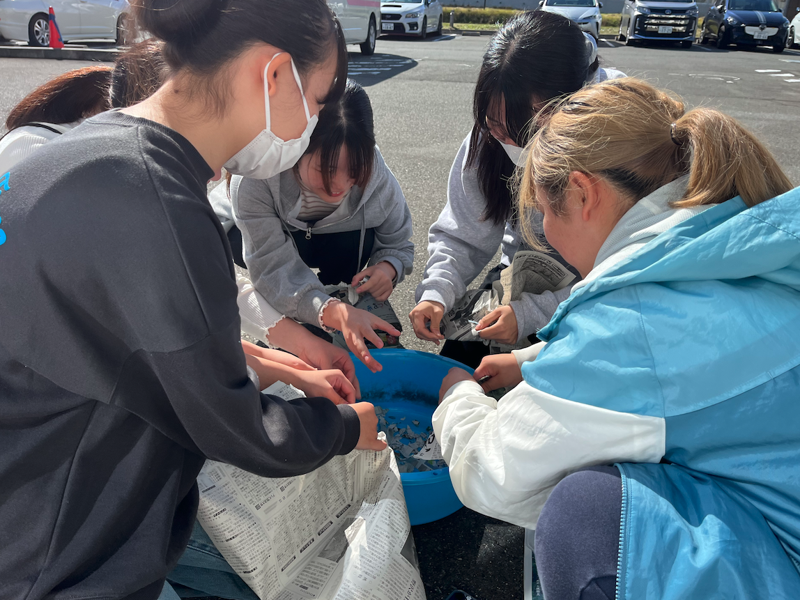 今回の授業では、身近な素材である新聞紙で「石」を作ります。