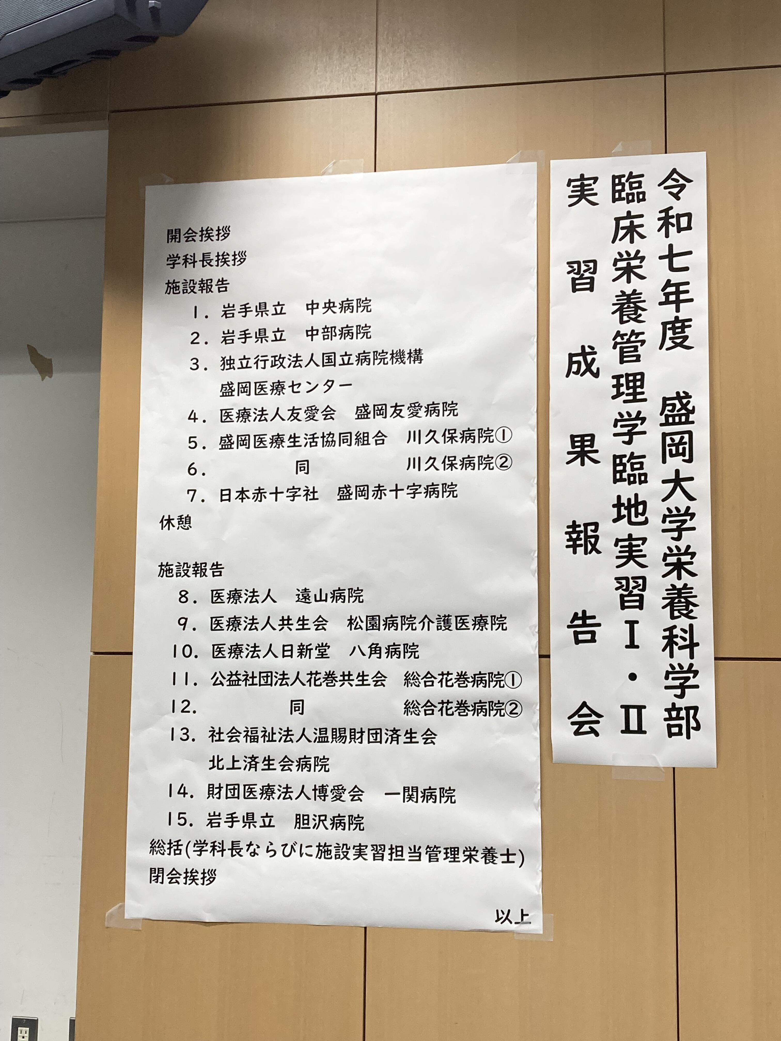 11月3日(月)いわて県民情報交流センター キオクシアアイーナで、臨床栄養管理学臨地実習成果報告会と実習担当者意見交換会が開催されました。