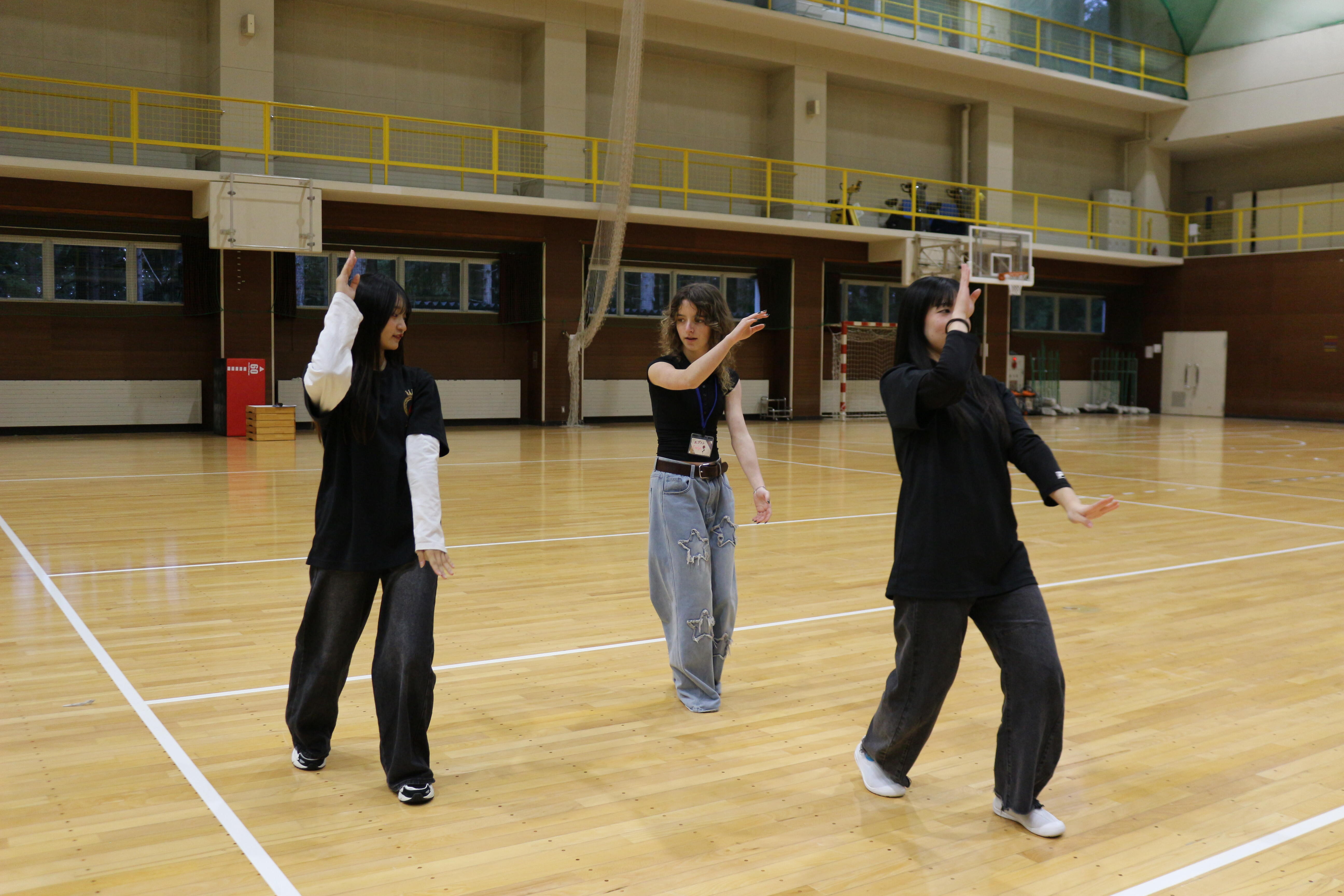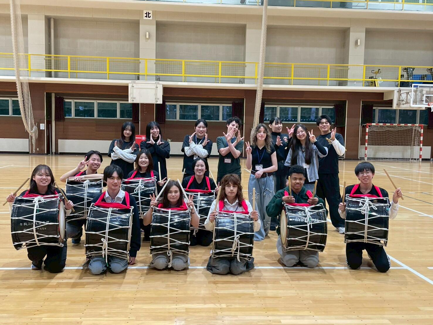 当日は大学の図書館を見学した後、日本文学科嶺岸玲子教授の指導のもと、本学学生と日本語や英語を使いながらカナダやビクトリアについての紹介文を考え発表する活動や、英語文化学科照井悦幸教授の武士道についての特別講義にも参加しました。また、盛岡大学・盛岡大学短期大学部さんさ踊り実行委員会によるさんさ踊り体験では、太鼓、笛、踊り、ホイッスルの4つのパートに分かれて練習した後、全体で合わせて演奏・演舞しました。練習中は熱心に学生の動きを見て学び、休憩時間中も練習をし続ける中高生もおり、さんさ踊りの魅力を十分に味わったようでした。