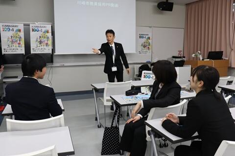 12月は、秋田県、宮城県、仙台市、川崎市、青森県の教育委員会の方にご来学いただき、各自治体の魅力や教育の状況、教員の働き方の現状、募集要項や採用試験の内容などについてご説明いただきました。