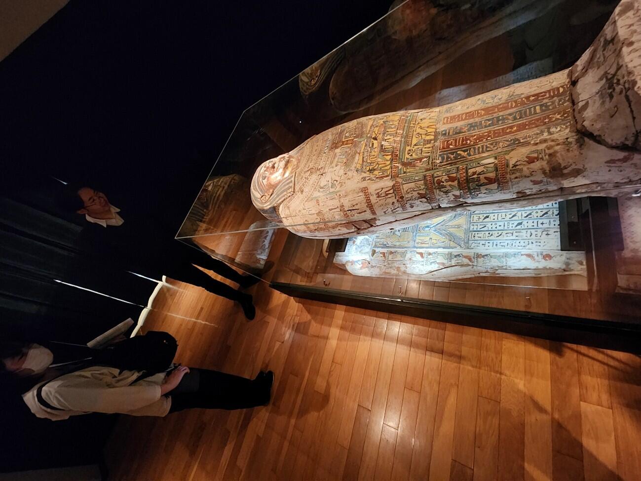 「古代エジプト展」を見学した学生は、すでに2年生の時に古代エジプト文明等を概説した授業「オリエント史」を聴講していましたが、実際の展示を見学して「現物でないとわからない質感やサイズ感、デジタル処理された画像では見えない部分などが余すことなく観察できた」「権力の正統性を示すために権力者を神と同一視することを古代エジプトでも確認できた」「ヘラクレス像の模様からは力強さや英雄性が伝わってきて、当時の人々がどのような価値観や理想像を持っていたのかを垣間見る」「ヘレニズム期のエジプトの神はエジプト的な要素が思っていたより見られなかった」「コインに描かれていたクレオパトラ7世は綺麗な顔立ちというよりは男性のような輪郭、顔の形をしていた」等の感想が学生たちから寄せられました。