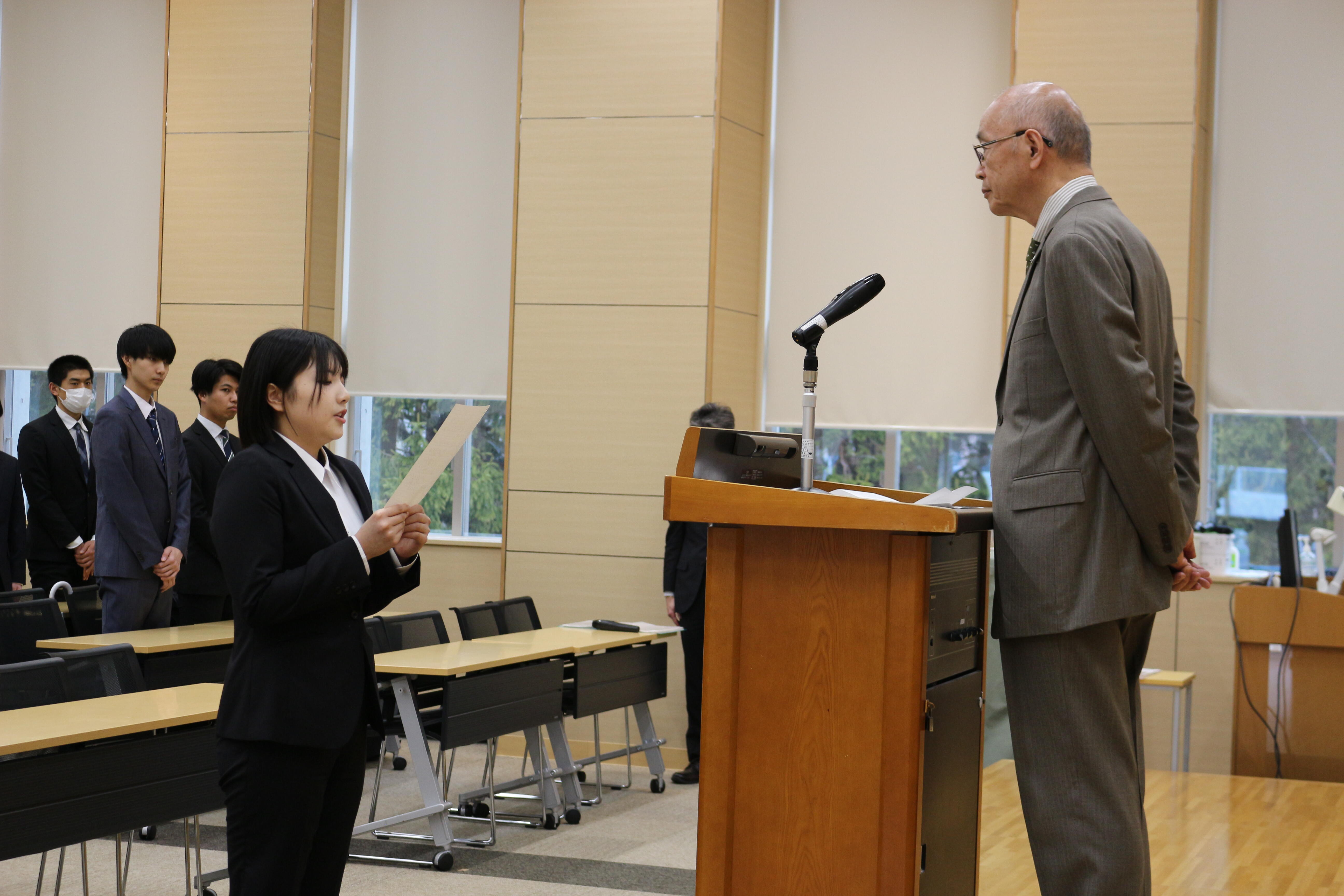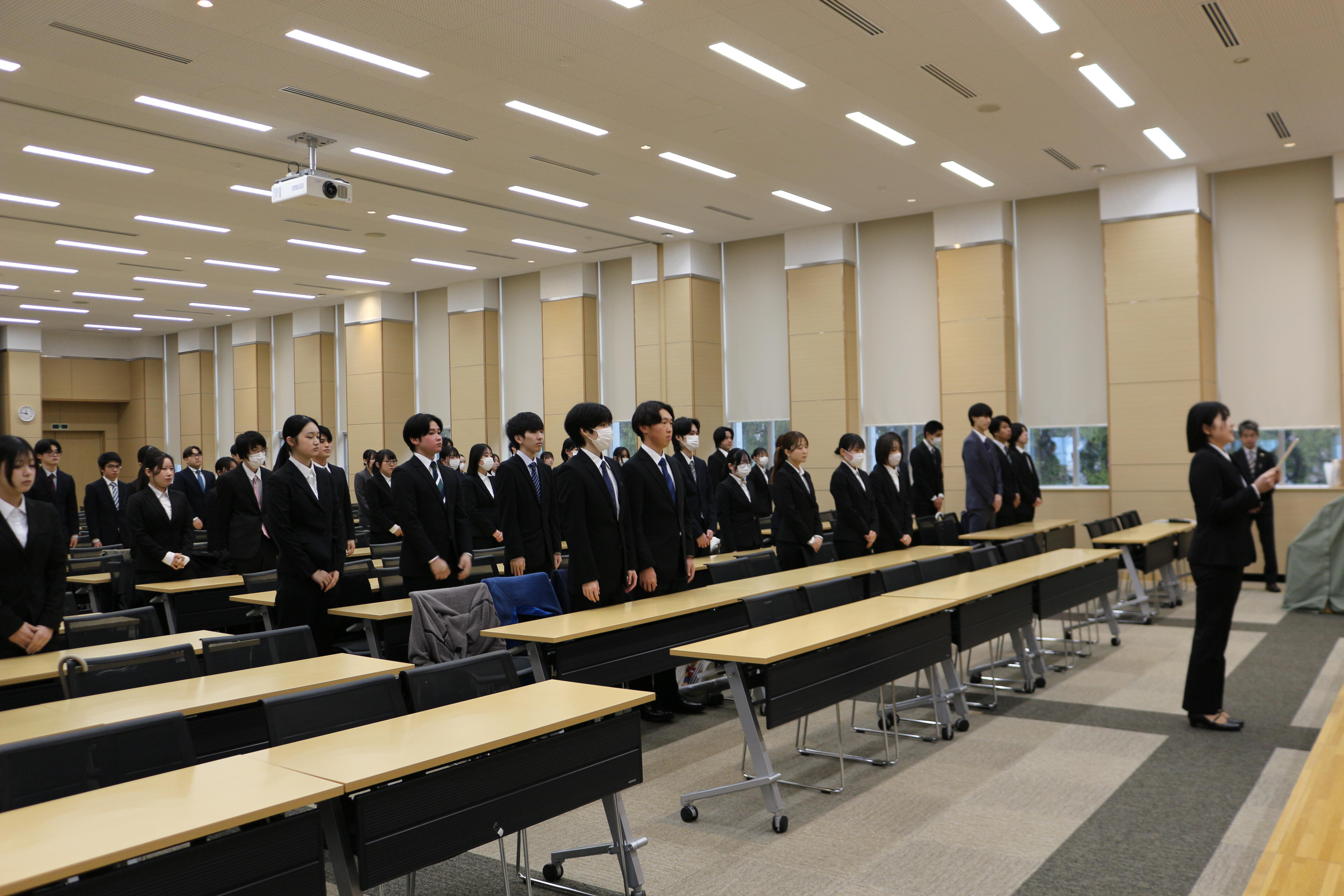 2026年3月31日(火)に「令和8年度小学校教育実習出発式」が行われ、小学校で実習を行う学生62名が決意表明をしました。