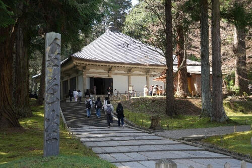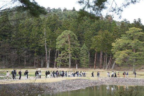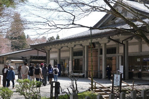 研修先は午前が中尊寺、午後は毛越寺で、これから始まる日本文学科での講義内容と関わりのある事柄について、要所要所では教員が解説を行いました。また、昼食会場では沢山の料理をいただきながら、歓談にも花が咲いたようです。今年も新入生オリエンテーションの締めくくりに相応しい一日となりました。