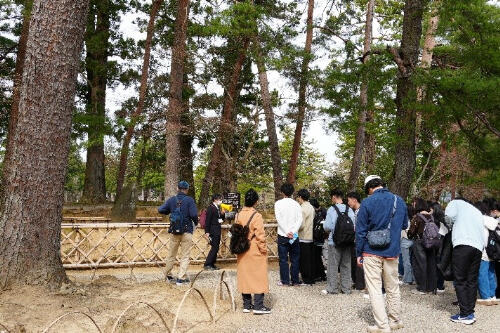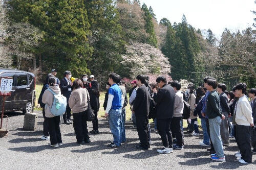 令和8年4月9日(木)、日本文学科では新入生特別研修として平泉を訪れました。当日は晴天に恵まれ、県南地域の桜は既に満開のようでした。この研修は、大学教育への導入及び新入生同士や教員との親睦を深めることを目的として実施しています。